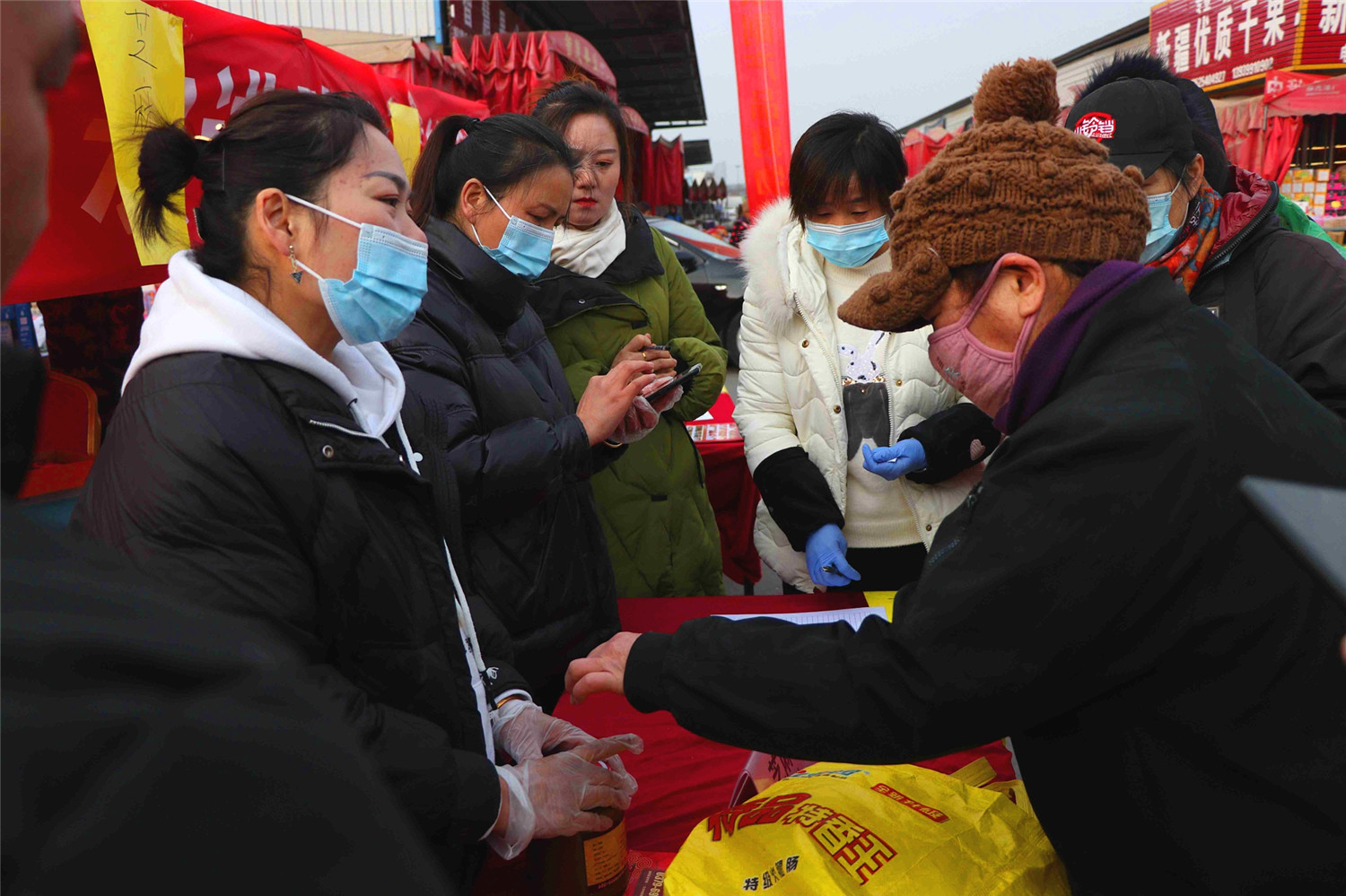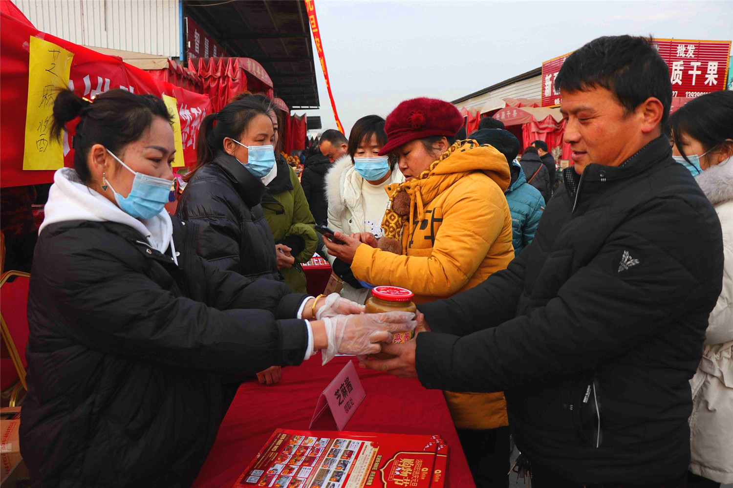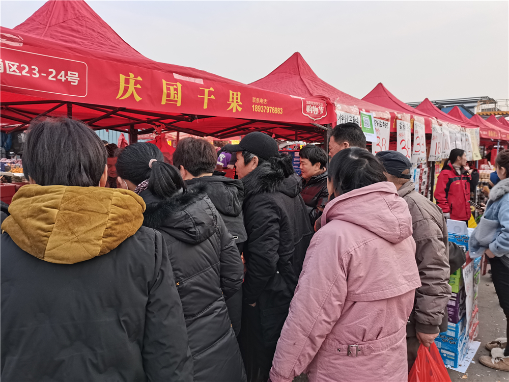 洛陽宏進慶元旦購物節活動期間,免費贈送300桶食用油和480瓶芝麻醬,領取現場排起了長龍,比肩繼踵。現場已經有不少人開始儲備年貨了,每個攤位上都圍滿了人,買的多也不用擔心,商家可以幫忙送到車邊。